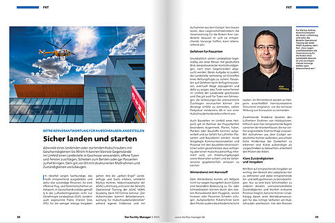 Die Abwinde eines landenden oder startenden Hubschraubers könnten mit 70 bis 90 km/h selbst kleinste Gegenstände im Umfeld einer Landestelle zu Geschossen machen, offene Türen und Fenster zuschlagen, Scheiben zum Bersten oder gar Passanten zu Fall bringen. Dem gilt es mit strukturierten Maßnahmen...
