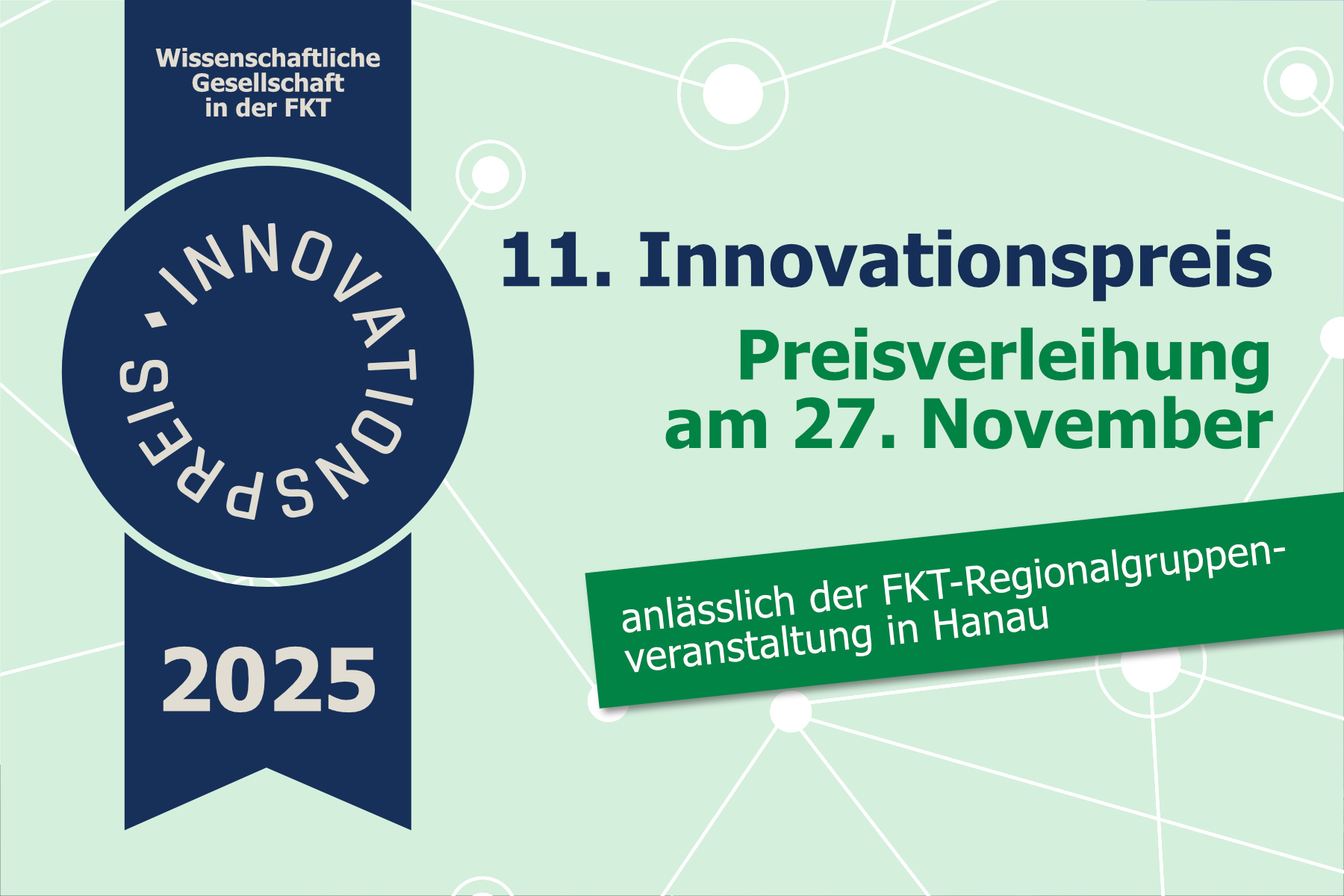 11. Innovationspreis der Wissenschaftlichen Gesellschaft in der FKT: Preisverleihung am 27.11. in Hanau
