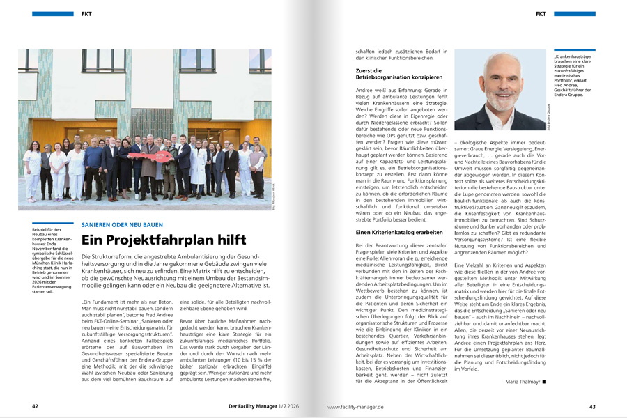 FKT-Nachrichten im Januar/Februar: Entscheidungsmatrix Bauvorhaben und Patiententransportroboter